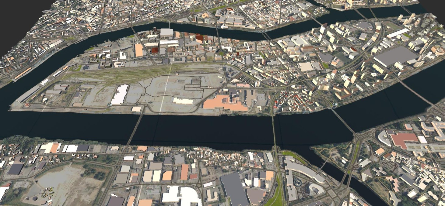 Le BIM permet egalement de visualiser l'impact de constructions futures, par exemple ici sur le site de l'ile de Nantes, modélisé en 3D