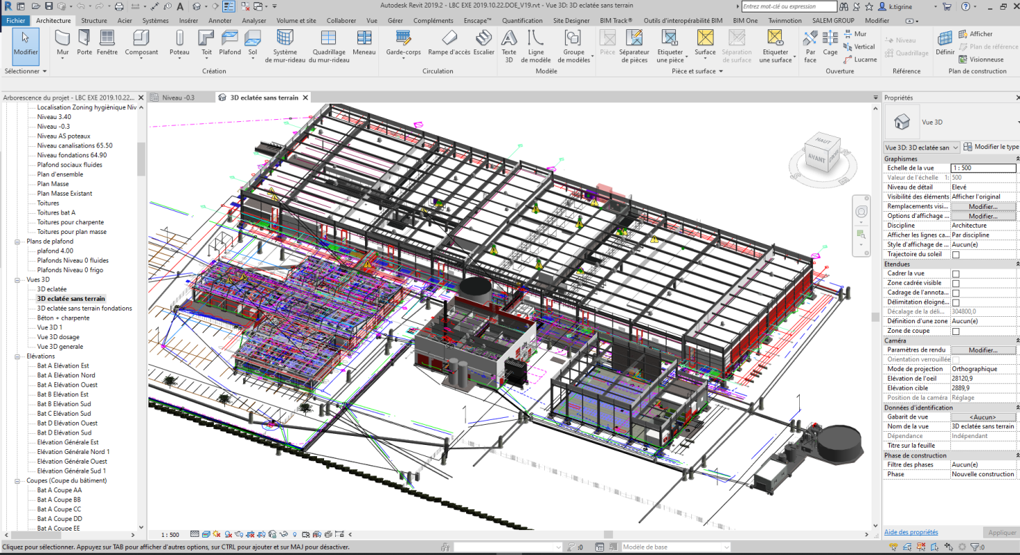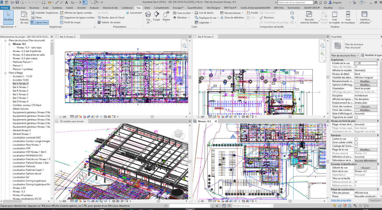 A partir des relevés papier, ou nuages de points realisés par scan 3D, modelisation de la maquette numerique des constructions existantes et du site environnant, et integrons les données necessaire a l'exploitation de celle-ci