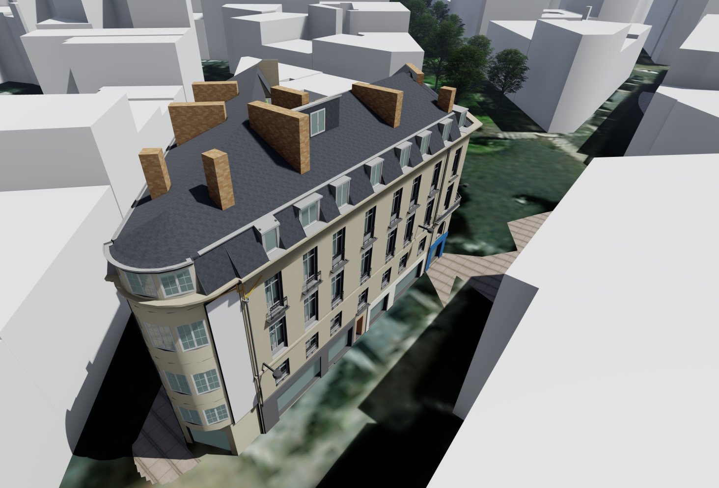 A partir des plans, sur la base d'un nuage de points, ou de relevés sur site, ou meme de croquis, nous réalisons la modelisation de la maquette numerique globale de batiments anciens existants, avec un niveau de detail adapté, et l'intégration des données necessaires a l'exploitation de la maquette.